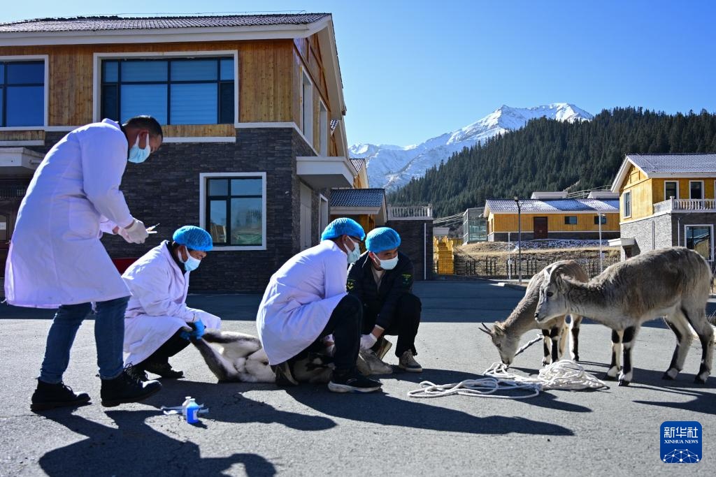 11月10日,在救护繁育站,工作人员为岩羊打疫苗。新华社记者 齐芷玥 摄