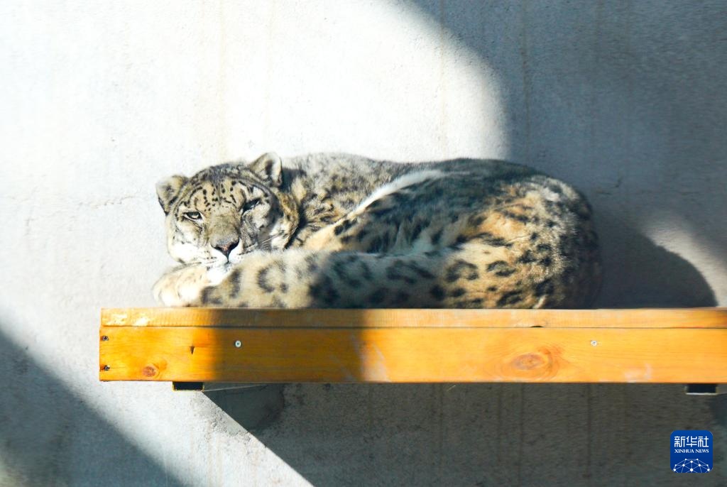 这是11月10日在救护繁育站拍摄的被救助的雪豹“齐德龙”。由于年龄偏大缺乏捕猎能力,它将在站内安度晚年。新华社记者 齐芷玥 摄